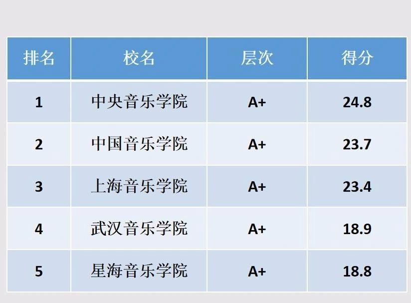 中央音乐学院、中国音乐学院和上海音乐学院分列前三位