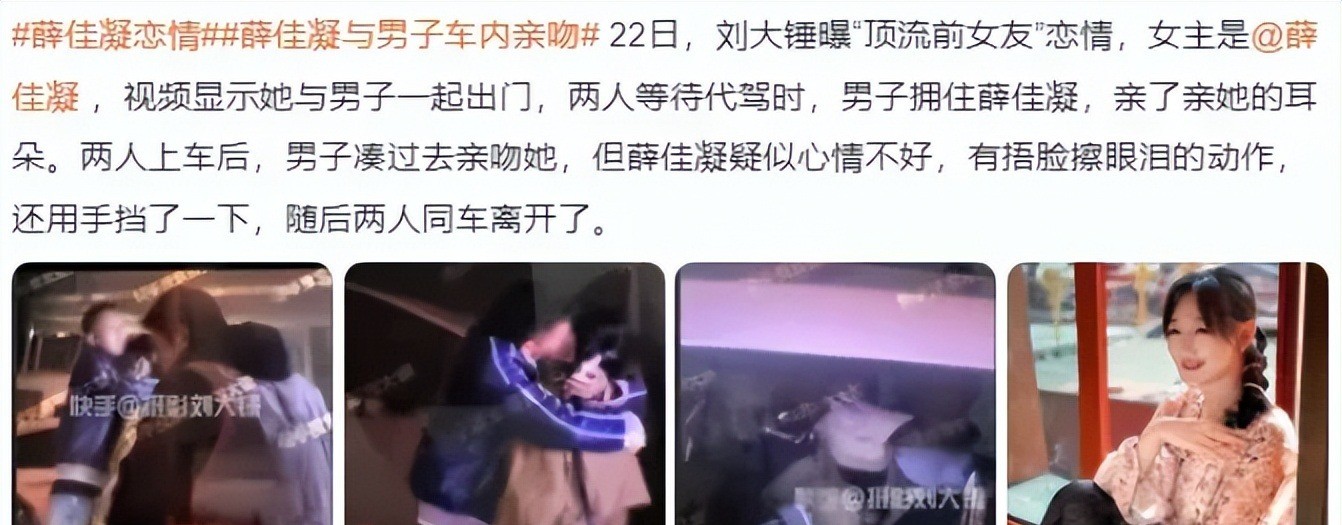 从曝光的照片来看,薛佳凝和男友在街头拥吻,耳鬓厮磨,完全沉浸在爱情的甜蜜之中。