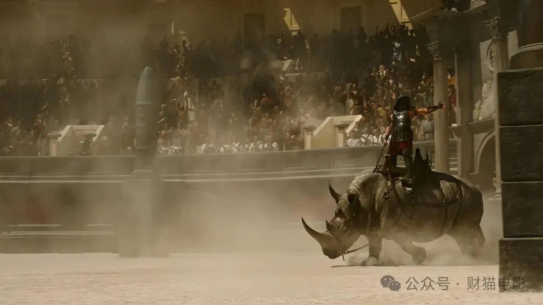 甚至,从带着犀牛的决斗,到斗兽场里的海战(这个部分在历史上,确实罗马大斗兽场是设计好能灌入海水进行海战表演的),依然是相当令人震撼和新颖的场面。