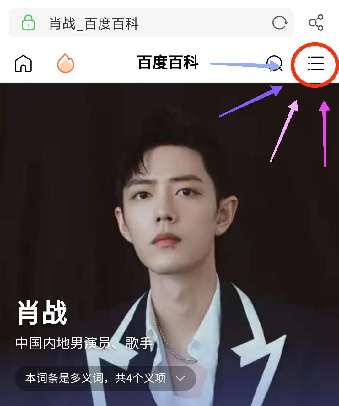 在任意浏览器中搜索百度百科,并搜索肖战: