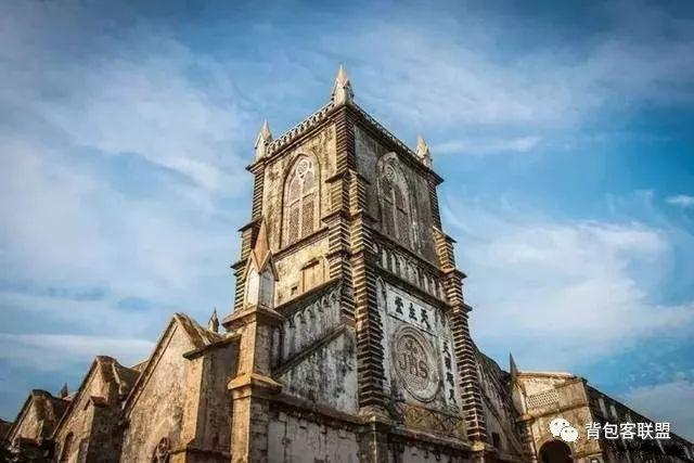 盛塘天主教堂是典型法国文艺复兴时期的哥特式建筑,晚清四大天主教堂之一。古老的教堂未经加工改建,建筑材料全取自岛上的珊瑚、岩石和石灰,显得很特别。