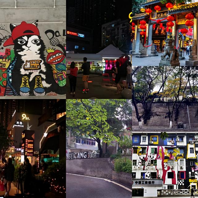 Day2 磁器口古镇(时间赶得急,就不去了)马房湾七彩巷子(马房湾66号江湖菜)四川美术学院(虎溪校区)观音桥(好吃街)九街(酒吧一条街)or北仓文创园。