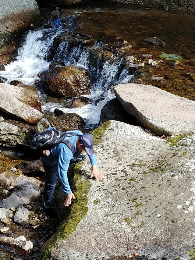 我爸运动神经好,还爱拍照。所以来老边沟是一定要“不走寻常路”一下的。然后正如我小标题中写的那样——常在河边走,哪有不湿鞋。于是他就华丽丽的掉水里了。