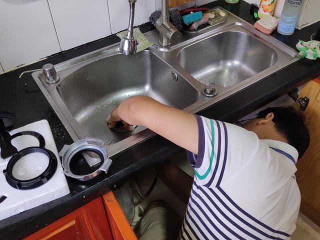▲师傅先将旧的水槽接口拆下,并做了彻底的清洁,师傅还是挺负责的。