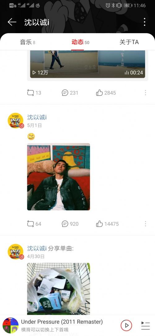唯一能了解他的信息渠道是网易云音乐,在云村他拥有132万粉丝,多为90后、00后人群,大多数歌曲的评论都突破了“999 ”,时不时发一些个人动态,热度不输头部音乐人。不玩抖音,但是带“沈以诚”标签的短视频播放量超过150万。
