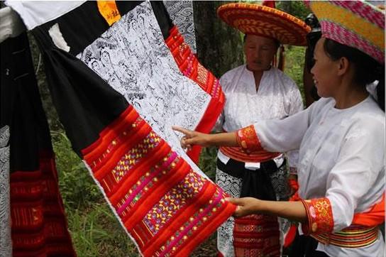 湖南省瑶族女子中流传的一种独特的手工艺,瑶族因女子筒裙上装饰有艳丽的挑花而被人称为“花瑶”。花瑶挑花工艺独具一格,花瑶挑花以藏青色或白色的土布和各色丝纱线材料,在挑绣时,挑花艺人不用描绘设计,也不用模具做刺绣架,只是遵循土布的经纬徒手挑制。花瑶挑花工艺非常精致,整件挑花画面黑白分明,疏密有致,动静相济,色彩对比鲜明,“远看颜色近看花”,具有强烈的视觉冲击力。
