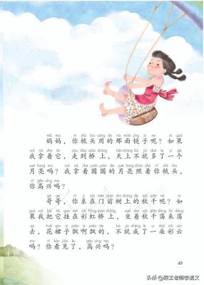 ③哥哥,你系在门前树上的秋千呢?如果我把它挂在彩虹桥上,坐着秋千荡来荡去,花裙子飘啊飘的,不就成了一朵彩云吗?