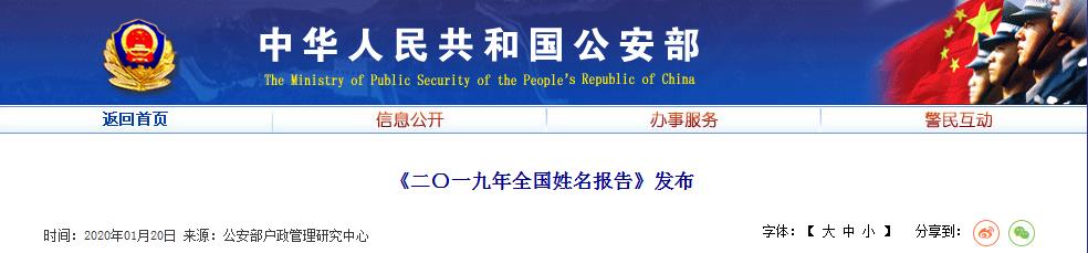 公安部户政管理研究中心依托全世界最大、覆盖全国14亿人口的信息系统,采用大数据技术对全国户籍人口(不含港澳台地区)的姓氏和姓名用字、2019年新生儿姓名用字等情况进行了统计分析。