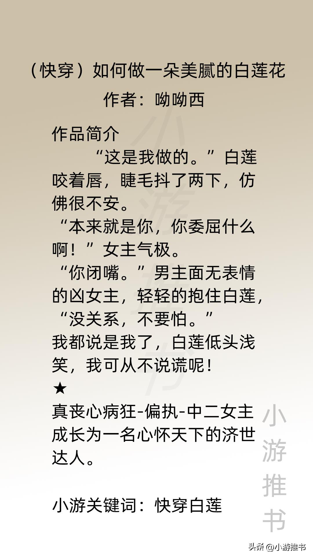 大家好,我是@小游推书,今日份是快穿大粮草,十本都是女主快穿爽文,在不同世界攻略男主,或者凭借系统开辟一条爽文之路,剧情精彩刺激,主角智商在线,熬夜也要看完系列,赶紧收藏慢慢看吧!#小说推荐##言情##快穿#