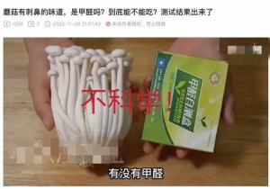 仔细看科学的测试结果,会发现,福尔马林是甲醛吗配双氧水,食用菌中含有甲醛测评。有人可能要担心了:那香菇、蘑菇做还能吃吗?