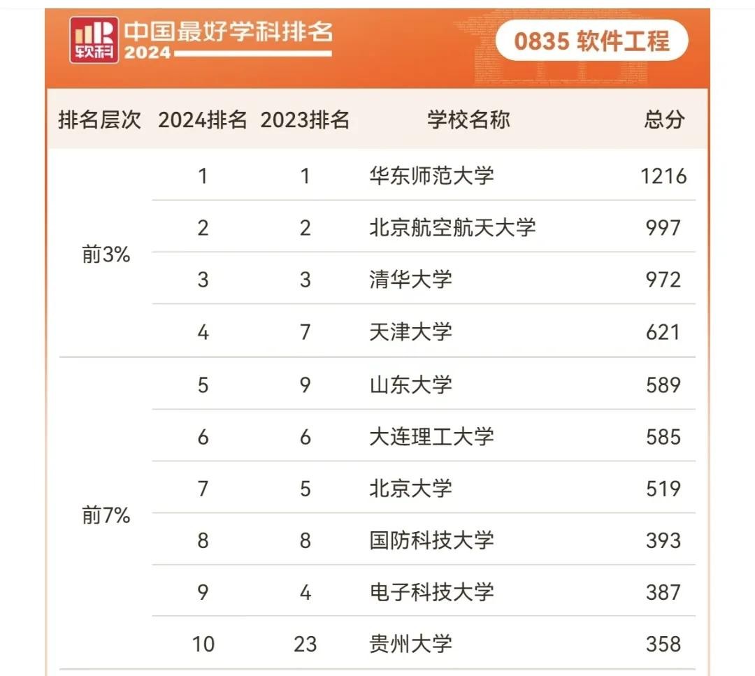 2024软件工程高校排名出炉:华东师范大学荣登榜首!西部211表现亮眼