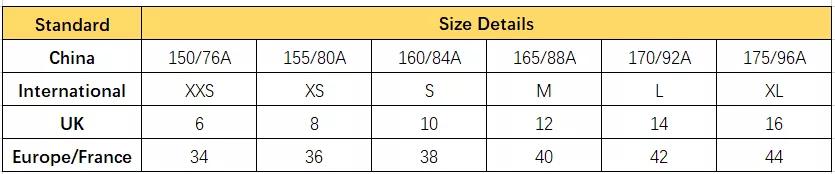 女式衣服尺码对照表
