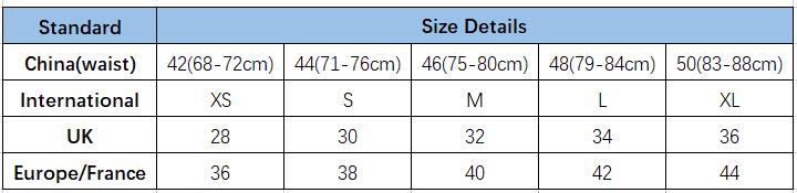 女士裤子尺码对照表