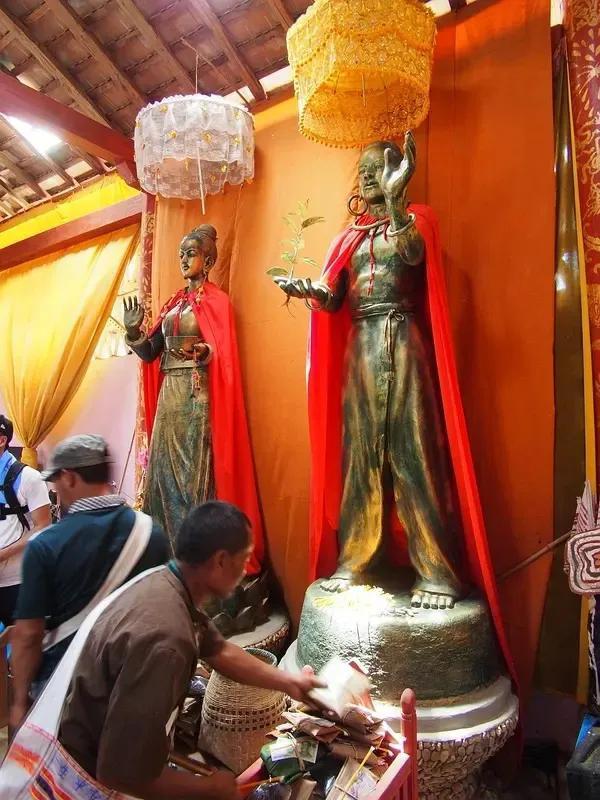 在这些古茶林边,便是布朗族聚集而居的村寨。村寨依山就势,一般建在顺山的缓坡地带,四周绿树成荫,一条由下至上的上山主道贯穿全寨,村寨仍保留有布朗族古村落建筑格局。村寨中布朗族人至今仍然保留着本民族独特的风俗、礼仪、宗教祭祀等民族风情。