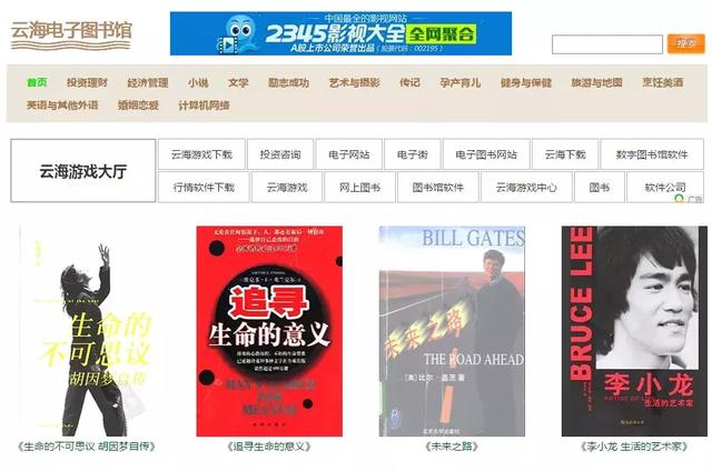 这个网站应该是全球最大的免费电子书库,超过10万本书籍,50万个文件版本,总能找到你喜欢的适合阅读器的电子书文件。品类齐全,搜索功能强大,图书管理方便。