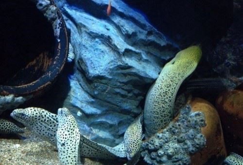 海鳝也是海洋之大鬼鱼之一,有着很长的身体。它们喜欢潜伏在在礁石的裂缝中,静候猎物靠近,然后用比较强大的颚部主动开始攻击。海鳝是一种令人生畏的掠食性鱼类,有时候也会攻击攻击人类。它们的牙齿非常锋利,顶端向后弯曲,上面潜伏着大量细菌,能够让伤口感染。一些海鳝种群的皮肤会分泌含有毒素的粘液。