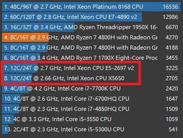结果这一次更离谱了:这块 8 核心的锐龙 4800H 直接秒掉了 12 核的至强工作站处理器。