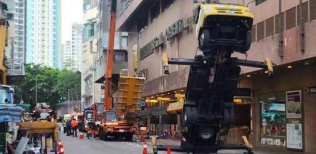 事发当时,拍摄现场的一辆小型吊臂车上,被带到升降台上,接着升降台一度上升到某大楼4楼外的位置,瞬间升降台坍塌并向后倾倒。