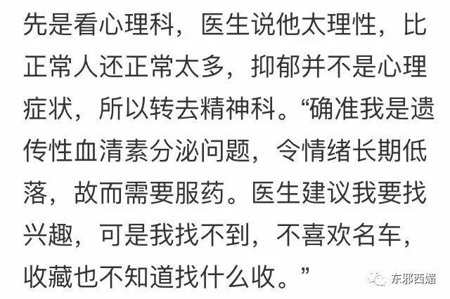 那么多姑娘花痴他的外表和财富,把他的抑郁症也当成浪漫小言的调料,而他的内心和痛苦,有谁真正愿意去了解呢?