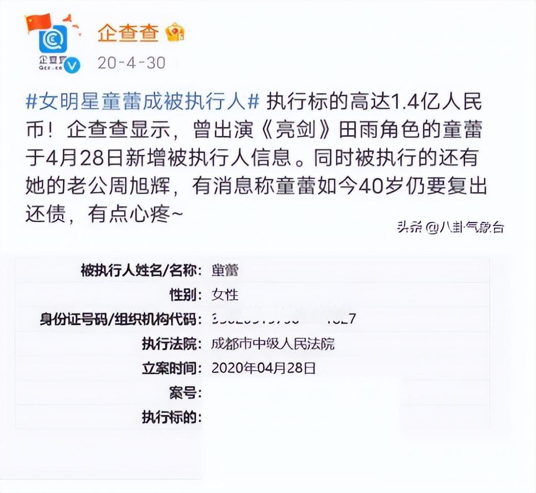 作为妻子的童蕾也被连累,需要代偿还1.4亿的巨额债务,一夜之间豪门梦碎,为了偿还债务,童蕾几乎什么类型的戏都接,2022年就有3部电影上映,4部电视剧开播,童蕾在剧中都是饰演戏份不多的长辈人物。