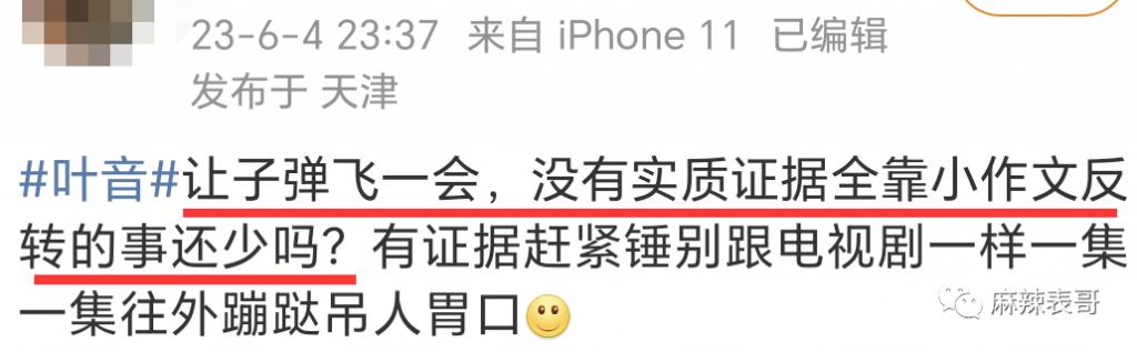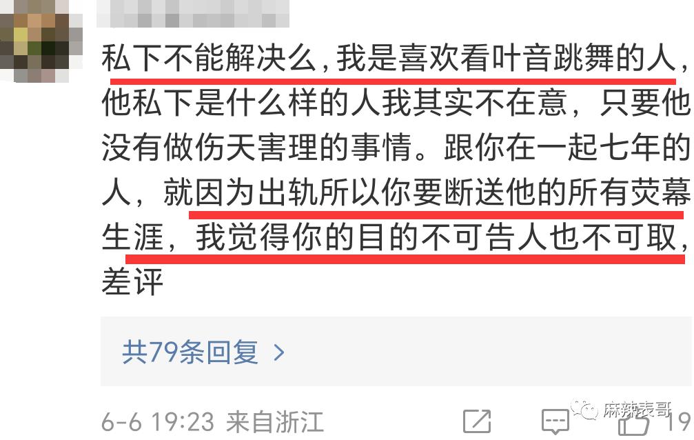 另外一些锤,就是叶音的粉丝这次爆料的。