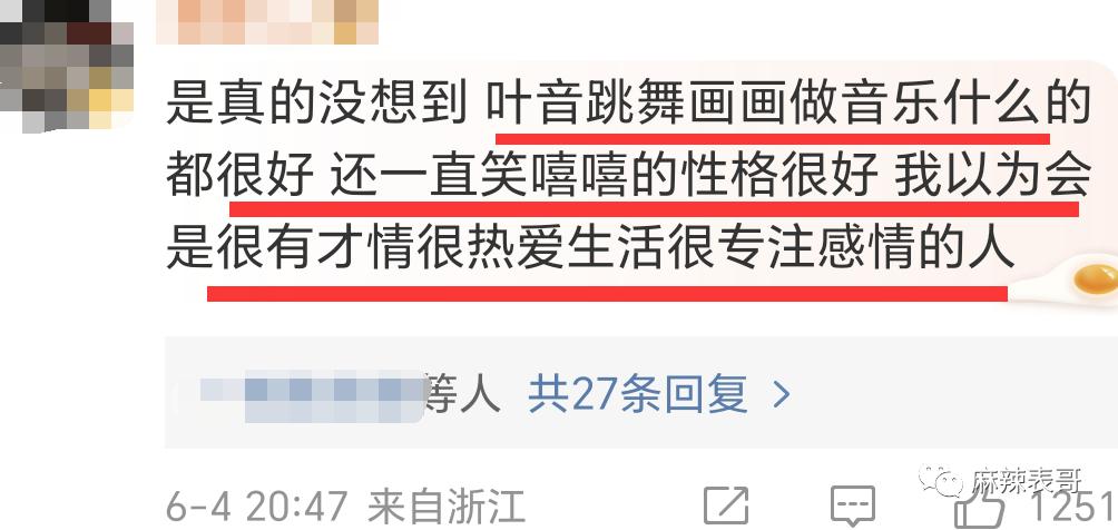 还有跳舞圈子的爆料,说早就知道叶音私生活混乱的事,以为女朋友默认原谅了。