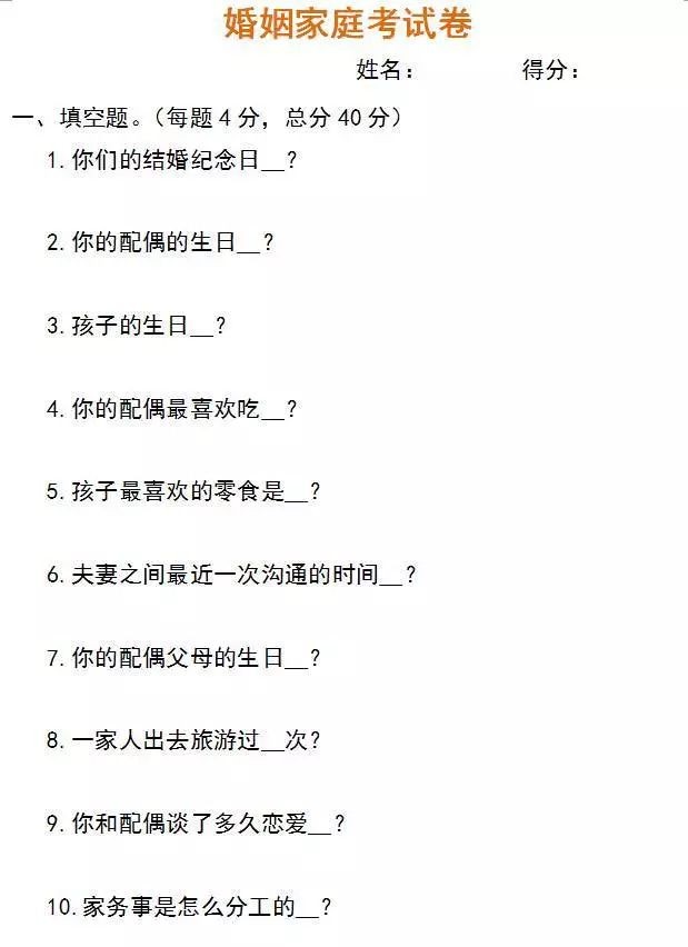“离婚试卷”火了!80后夫妻做完,女100分男0分!网友炸锅了……