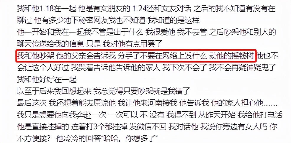 但是没想到的是,一个国庆假期过去,所有的事情都变了。祁影在网上发出了寒王与多位女生聊天的截图,还表示对方动手打了她,寒王的爸爸甚至还威胁她不要动了“寒王这棵摇钱树”。