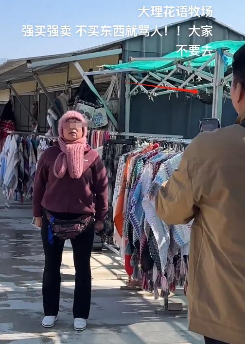 当天,任女士在大理花语牧场玩儿,景区外有一排商业街,主要售卖一些民族服饰和文玩纪念品。