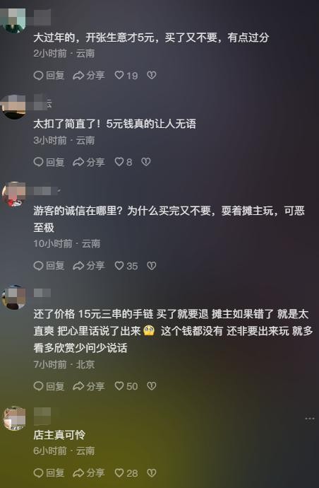 “店家都说了开张生意,能否退两串,5元买一串讨个彩头,这都不同意,太不懂人情世故了。”