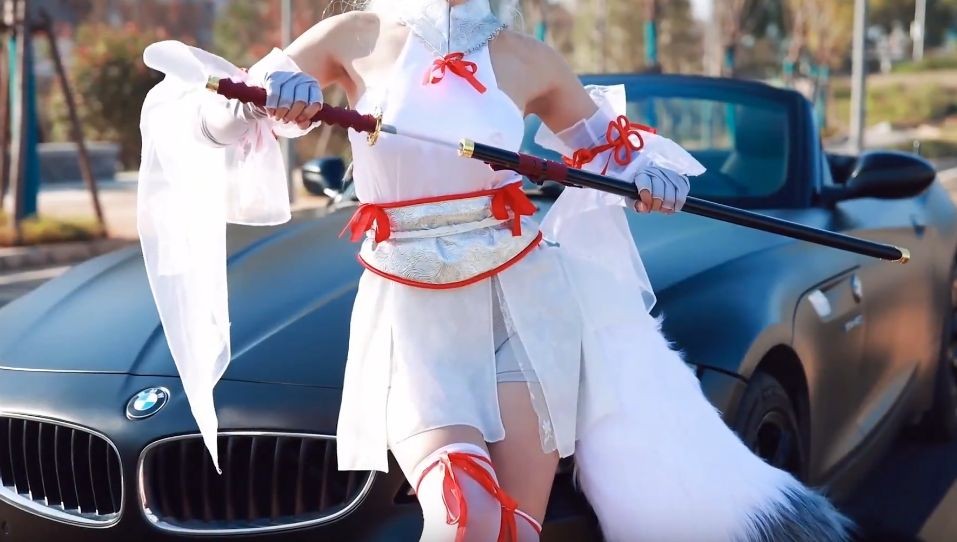 不过这位网红喜提宝马受到大家的关注,还有一个原因是她身上穿着《永劫无间》最惹眼的胡桃白丝COS装。不知道这位网红是想靠着人气角色胡桃来吸一波眼球呢,还是想借机宣传一波自己喜爱的游戏,总之这样的“联动宣传”还真让她的小胡桃狠狠在网红圈和游戏圈都火了一把。