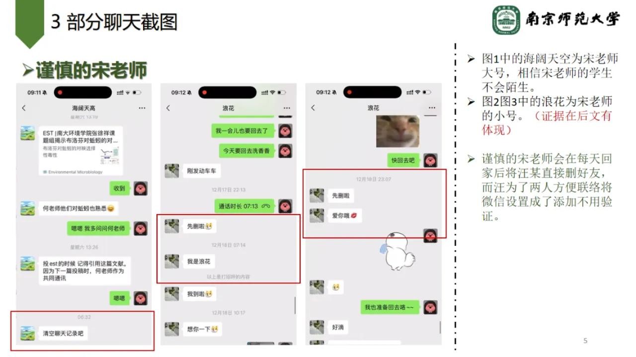 很快,同一天,南京师范大学发布情况通报称,经初步调查,学校研究决定,免去宋某某环境学院副院长职务,取消其研究生导师资格,暂停一切工作。后续将根据进一步调查结果,对相关人员依纪依规严肃处理。