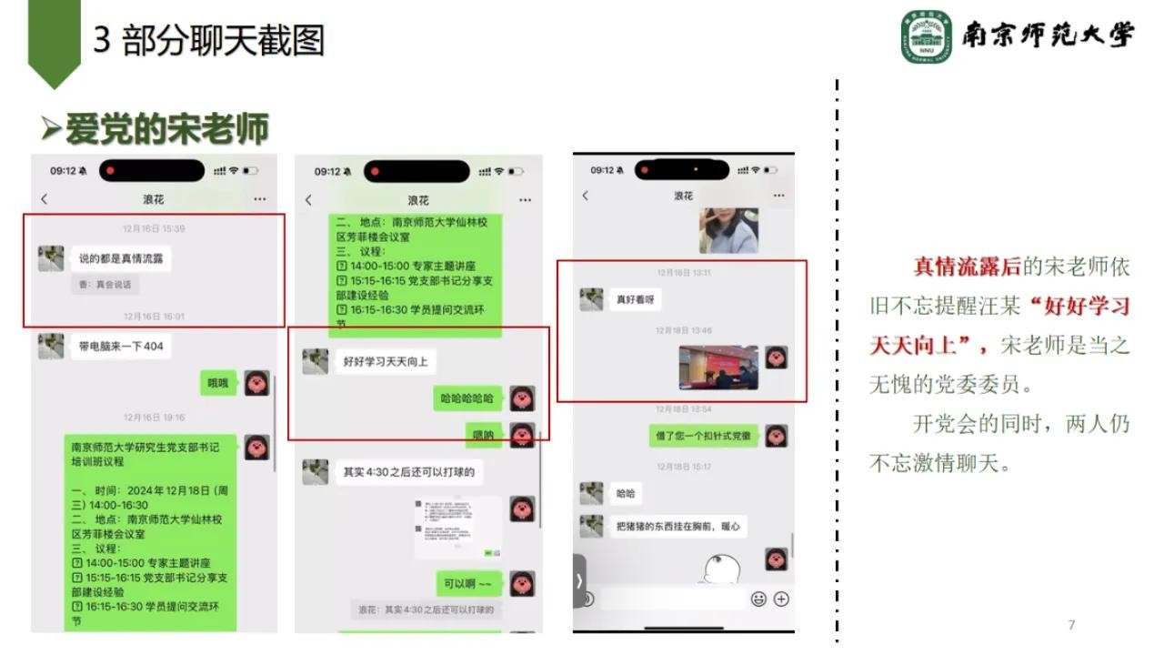 网友还在公开信中晒出宋某某和其女友的聊天记录,里边不仅有“可爱的宋老师”“小香香猪猪”等肉麻话语,更有不堪入目的私密话题。