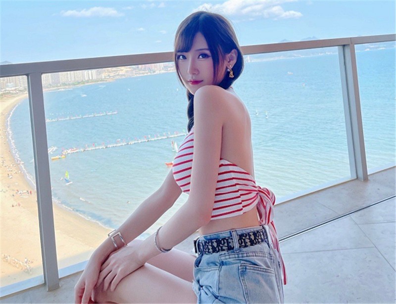 腐团儿晒工作照穿泳装,堆堆袜长腿很抢眼,同在海边直播休思绝了