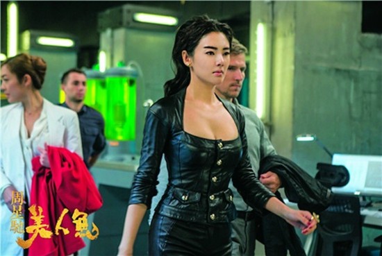还在今年的《美人鱼》中出演坏女人,其事业线秒杀主演林允