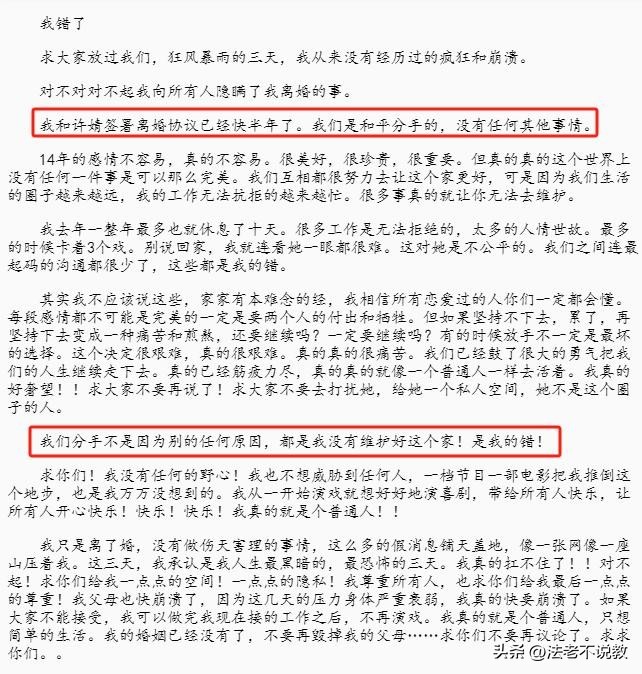 同时,陈赫还晒出了二人签订的离婚协议书以自证清白。