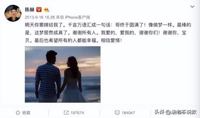 在官宣结婚时,陈赫告诉粉丝们“要相信爱情”。