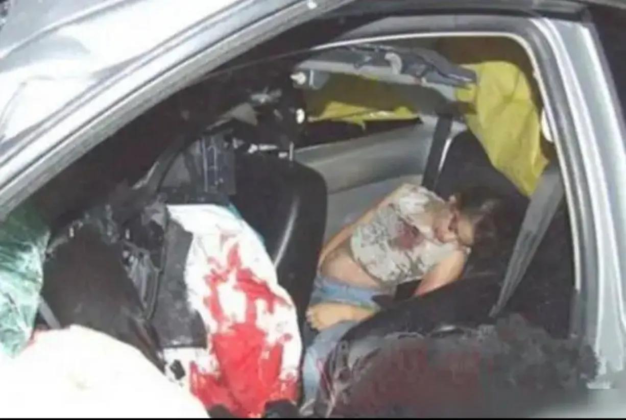 当时坐在前排的两个人都系着安全带,所以伤势不太严重。坐在后排的刘丹因为没有系安全带被甩了出去,造成了非常严重的伤势。