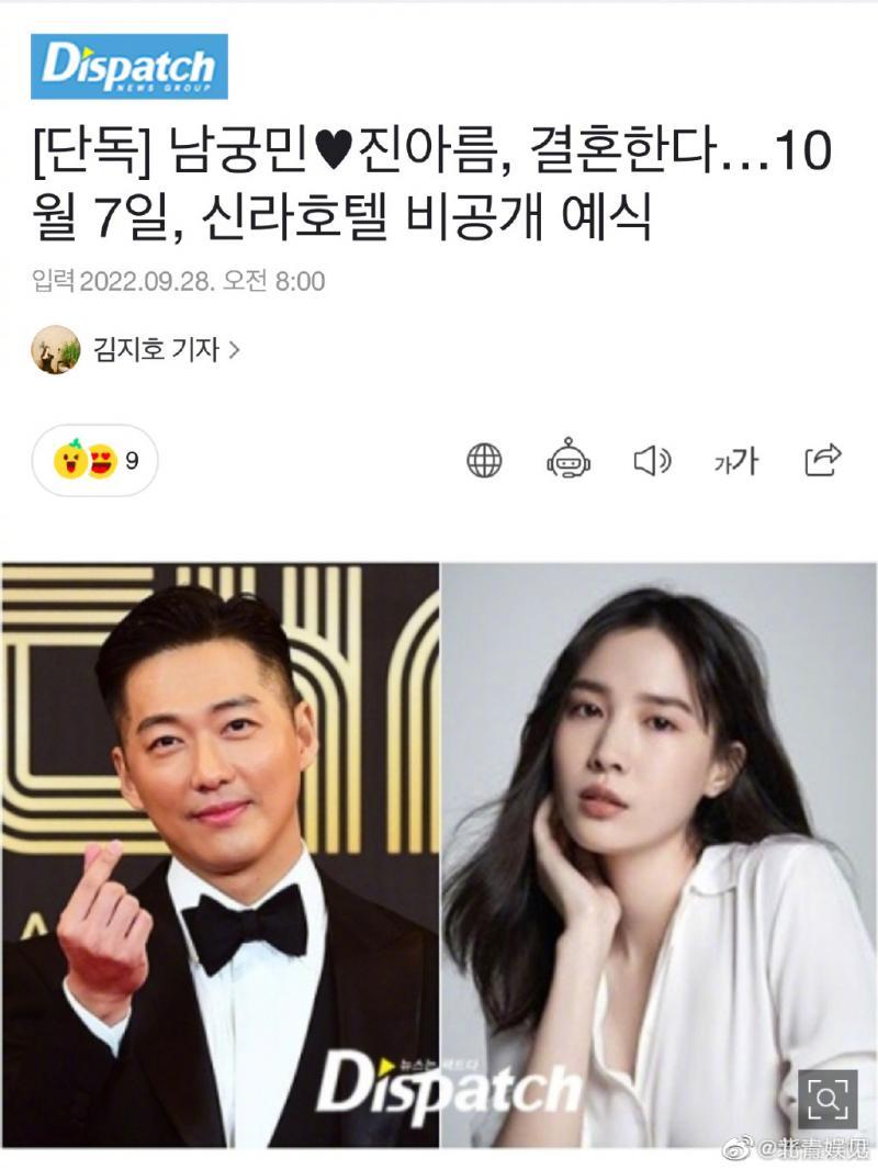 韩国演员南宫珉和陈雅凛恋爱7年,将于10月7日结婚