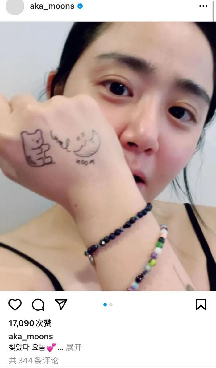 跟粉丝炫耀自己的纹身贴↓