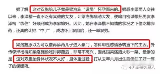 后来,梁洛施又替李泽楷生下了双胞胎儿子,不过有传言说这两个儿子因为梁洛施偷吃排卵药而来的,于是生下来就是脑瘫儿。