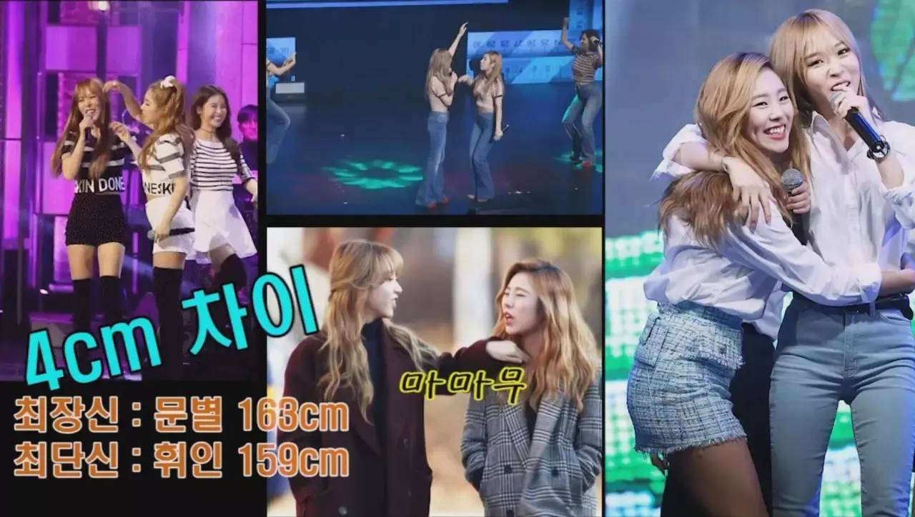 韩国各女团之间身高差异图(女团队内最高和最矮成员之间的身高差)