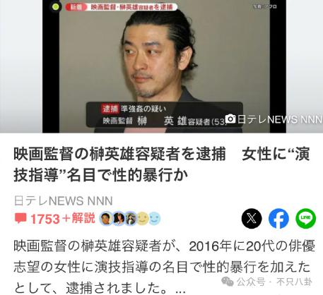 事实上,榊英雄性侵可不是什么新鲜事,而他现在才被抓,只能说男导演在社会上是真好混啊。