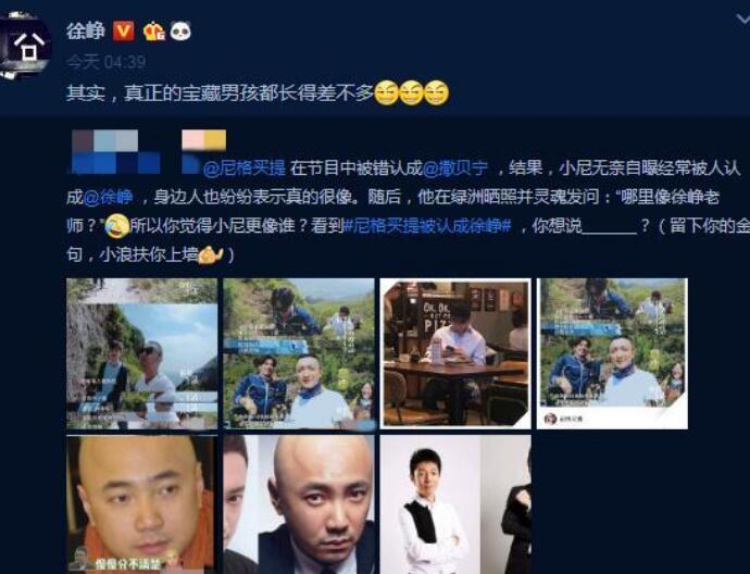 徐峥撞脸尼格买提央视主持人被人认成演员徐峥,随后他发了一张自己的图片说“哪里像徐峥老师?”不看不知道,真的有些相似。徐峥回应说:“宝藏男孩都长得差不多”,是呀,长得差不多,只不过一个有头发,一个没有头发而已。两位都是非常优秀的人,尼格买提是央视主持人,一直受到大家的喜欢。