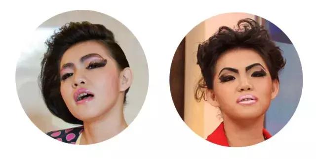 谢依霖当时用力过猛的修容被当做反面教材遭了不少吐槽,颜色过重特别不自然,确实不值得提倡,但瘦脸效果可是立竿见影。谢依霖算是非常标准的圆脸,但是变成hold住姐后,她的脸更偏向鹅蛋脸,而且面部变得非常立体 。