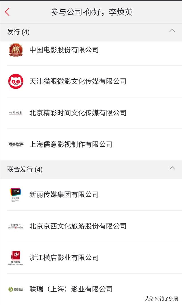 据公开资料显示,该片有8家出品方,18家联合出品方,4家发行方,4家联合发行方。