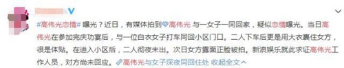 不过3月4日有记者拍到高伟光和一个女人一起回家,两人在小区门口相间并且还有说有笑,而后两人一起进入小区内,第二天女方才从小区出来。而后有媒体扒出这个女人就是两人一起合作盗墓剧里的小师妹,两人在剧里感情就很好,这是恋情发展到现实了吗?