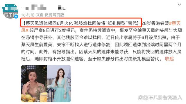 香港名媛蔡天凤被害两个月了,5 月 11 日,蔡天凤的家人才透露,她即将出殡的消息。
