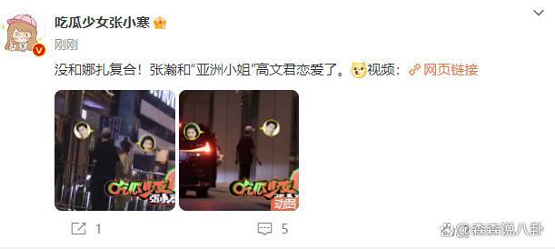 5 月 15 日,狗仔 " 张小寒 " 曝光张翰新恋情,他和古力娜扎并没有复合。# 张翰新恋情 #
