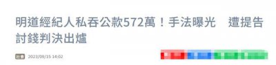 - 明道经纪人被控私吞公款,法院判决出炉,小 S 老公是公司合伙人